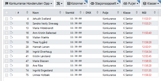 Dersom du har en startstasjon eller startgrind ser du lett om tiden er koblet til en deltaker. Du kan også sette opp en stasjon som startsjekk med et tillat avvik. Deltakere som starter utenfor avviket vil bli markert med et ikon.