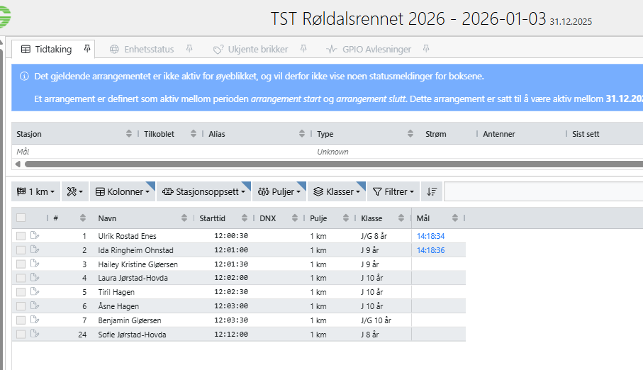 Dersom du taster et startnummer som ikke finnes vil du få en feilmelding.