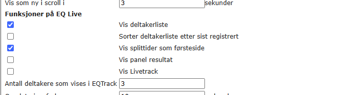 For å vise strekktidene som standardvalg kan man under resultatloppsett sette at de skal vises som første side.