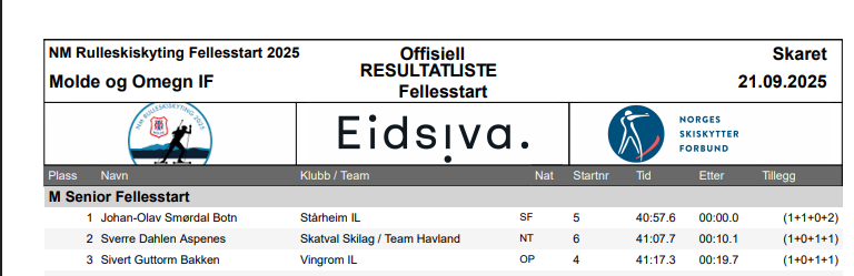 Resultatliste aktive arrangement er en standardisert resultatliste for klassestyrte arrangement.
