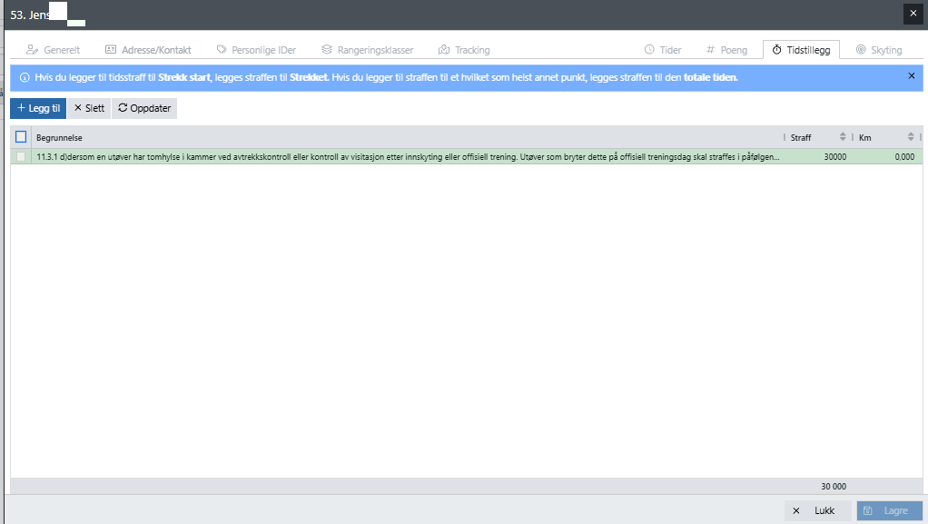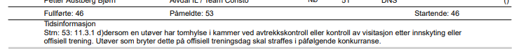 Listen gir mulighet for å vis offisiell status og protestfrist om det er lagt inn fra løpsoversikt.