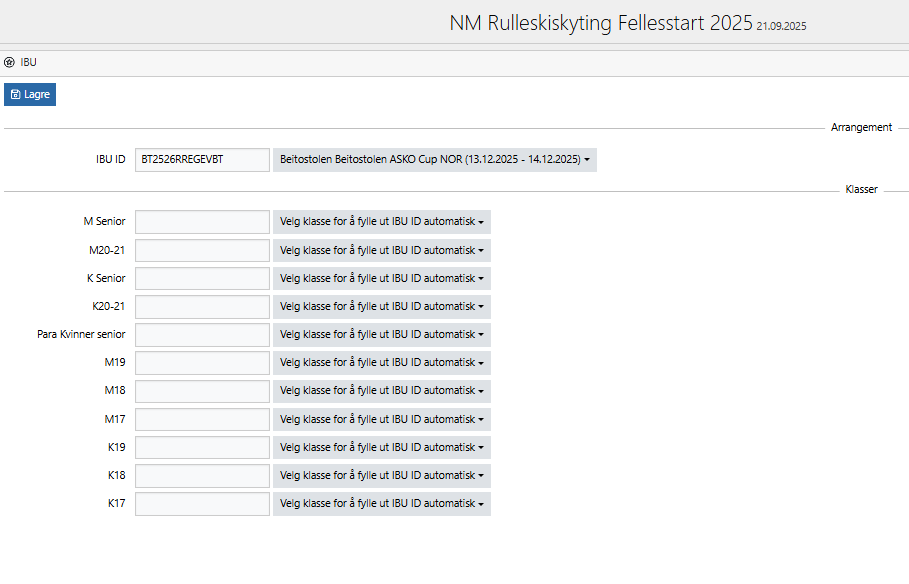 Du må først koble rennkode og klassekoder fra IB