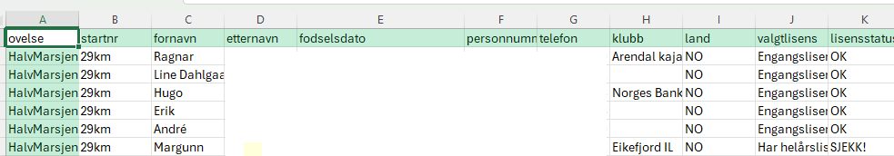 Det lages en excel/Csv fil med resultatet av spørringen.