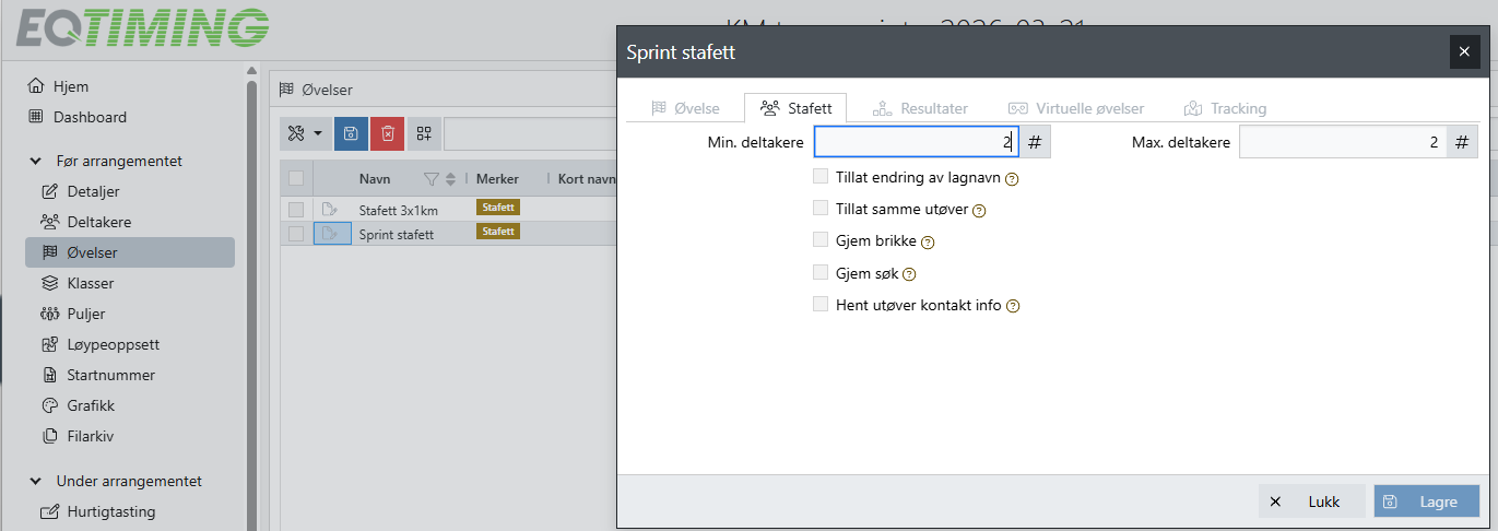 Listene er kun tilgjengelig om disiplinen på arrangementet er Teamsprint fristil eller klassisk