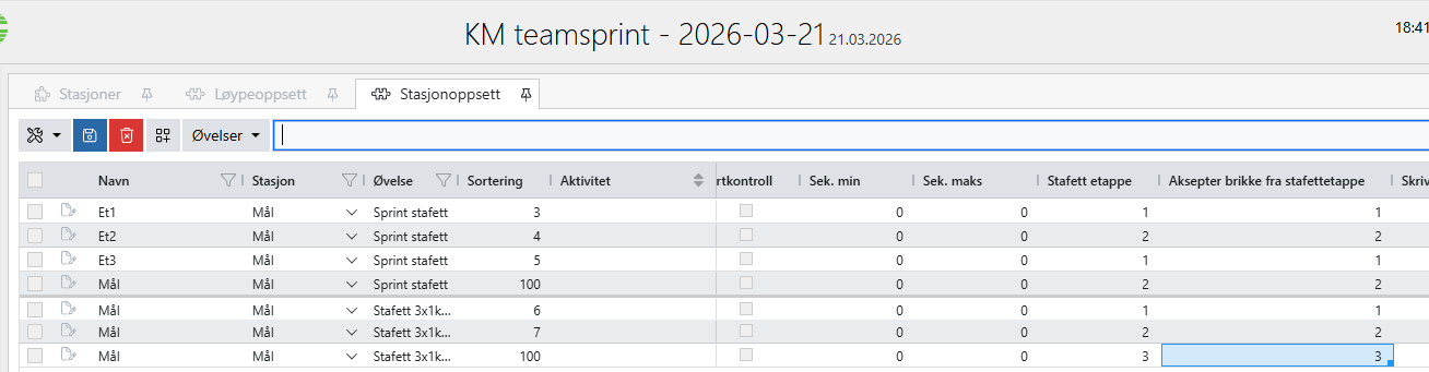 På øvelsene som skal gå teamsprint må en sette antall etapper, som er det antall personer som skal gå. Vanligvis 2.