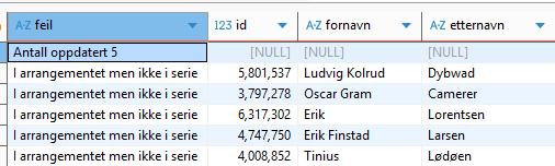 Dette brukes til å sjekke at det ikke er deltakere som utelates grunnet dubletter.