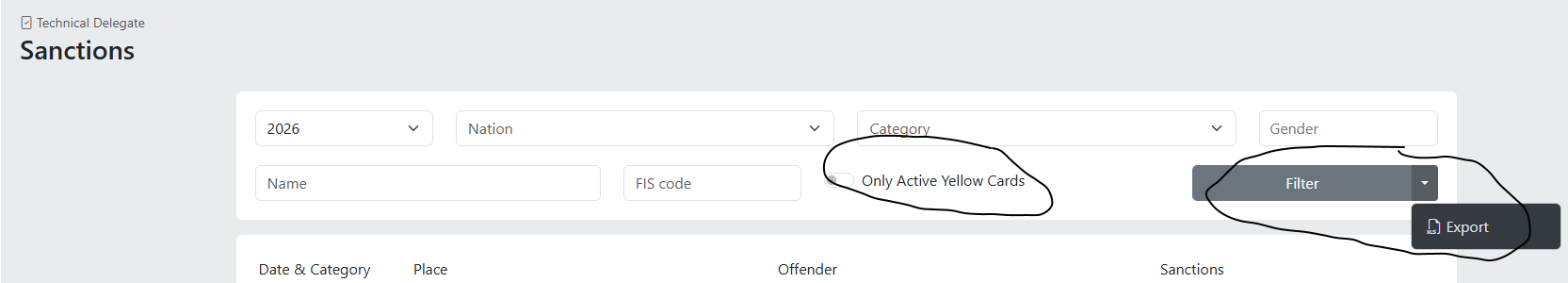 For å vise gule kort på Fis liste må filen lastes ned fra fis. Det krever innloging. TD og FIS live brukere kan normalt laste ned filen.