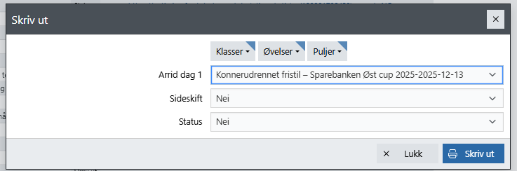 Du kan filtrere på klasser og øvelser i dagens arrangement