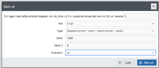 Dersom du skal tildele lag 1, 1 etappe brikke 1001 og lag 1, 2 etappe 2001