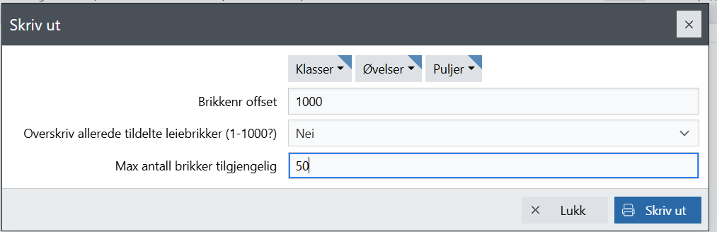 Tildeler leiebrikker fortløpende til de Stafettdeltakere som mangler chip 1