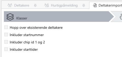 Når arrangementet er opprettet velger du deltakere og så fanen Deltakerimport.